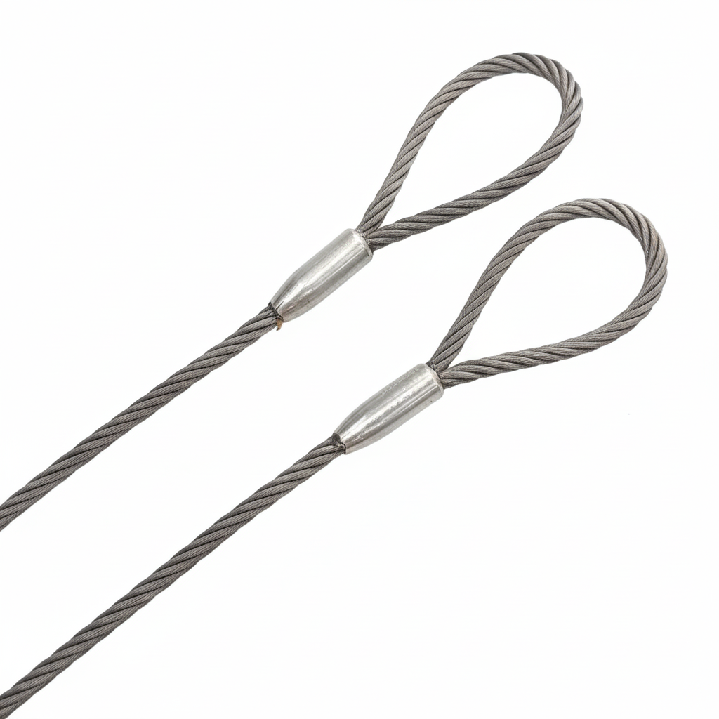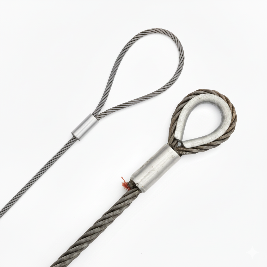 - ワイヤロープの端をU字に曲げ、その根元に専用のアルミ製やステンレス製のスリーブ(ロック管)を被せ、プレス機で圧縮して固定する加工法