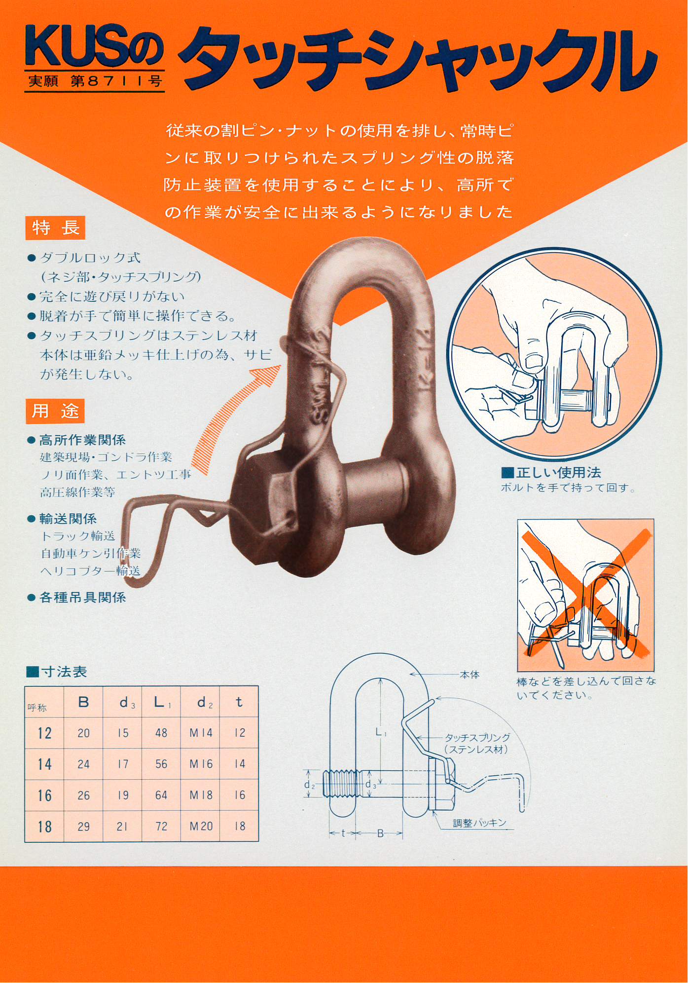 - ワイヤーロープやチェーンスリングなどの吊り具と吊り上げる荷物とを連結するための重要な金具です。